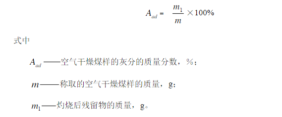 将装有煤样的灰皿放在预先加热至815ºC左右的灰分快速测定仪的传送带上,煤样自动送入仪器内完全灰化,然后送出。以残留物占煤样的质量分数作为煤样的水分。