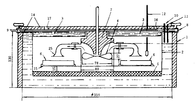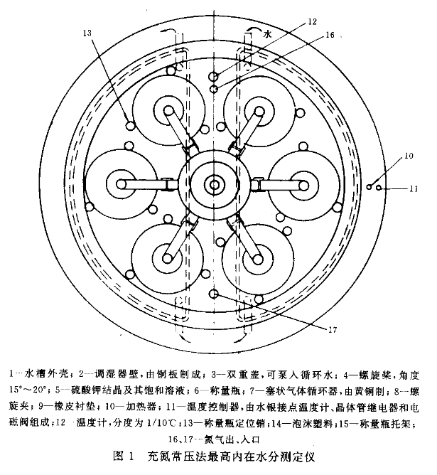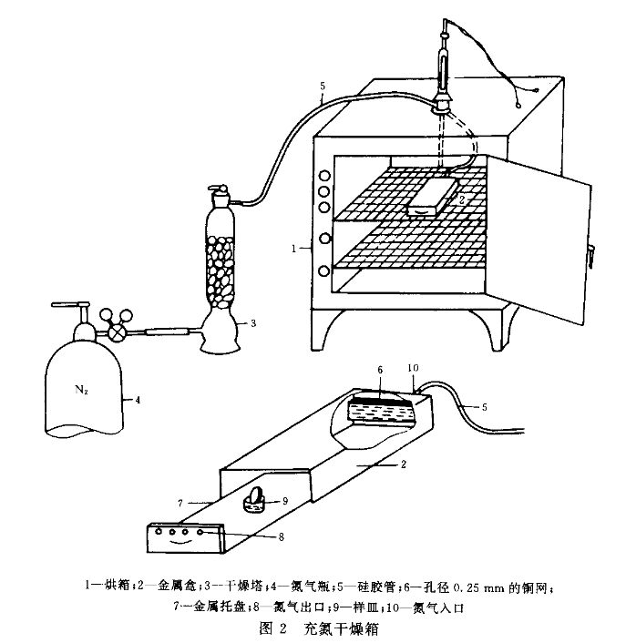 1 充氮常压法最高内在水分测定仪(简称调湿器,图1):要求温度能保持在(30+0.1)ºC,并能连续运转3昼夜以上。