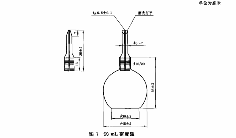 3 密度瓶:带磨口毛细管塞,容量为60ml,见图1