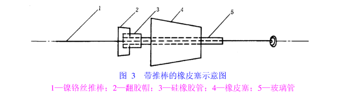 胶帽紧密连接,在翻胶帽的正中穿一小孔,使镍铬丝推棒的一端通过玻璃管后由翻胶帽上的小孔穿出