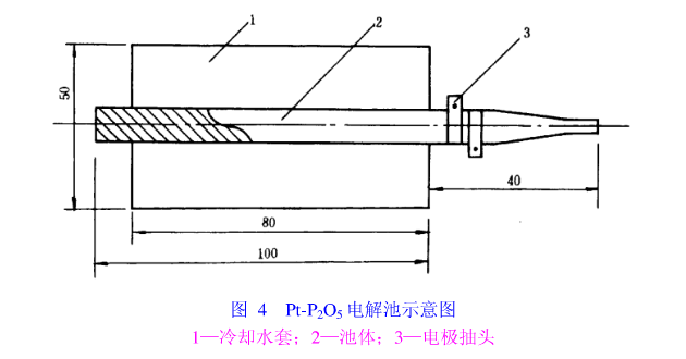 二磷。电解池外有外径约50mm,内径9mm~10mm,长约80mm的冷却水套。