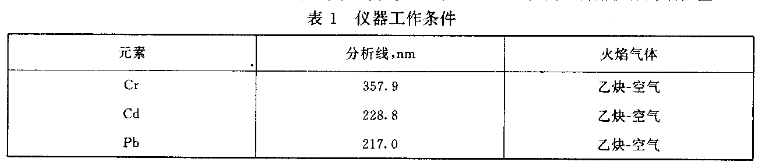 5.1 仪器工作条件的确定:除表1所规定的各元素的分析和所使用的火焰气体外,仪器的其他参数——灯电流、通带宽