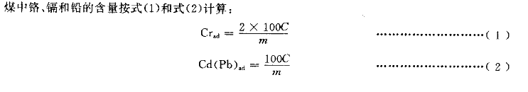 煤中铬、镉和铅的含量按式(1)和(2)计算: