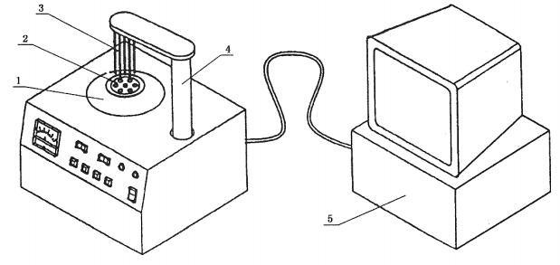 1-加热炉;2-铜加热体;3-测温电偶;4-升降杆;5-控制测量系统