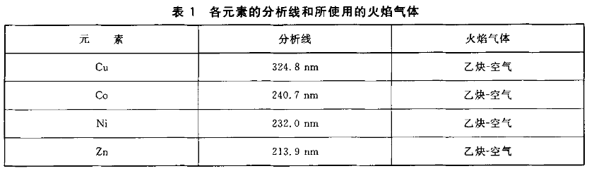 4.1 仪器工作条件的确定:除表1所规定的各元素的分析线和所使用的火焰气体外,仪器的其他参数——灯电流、通带