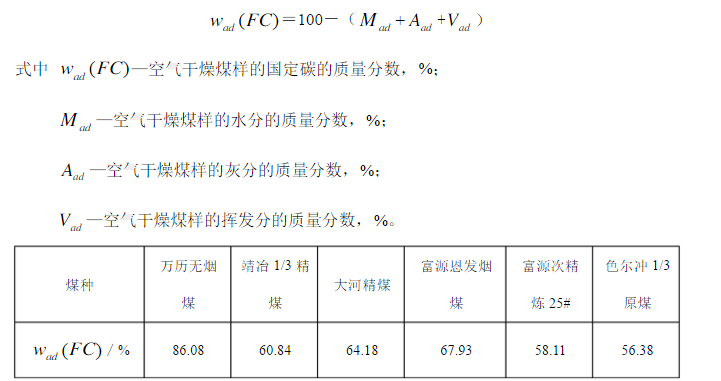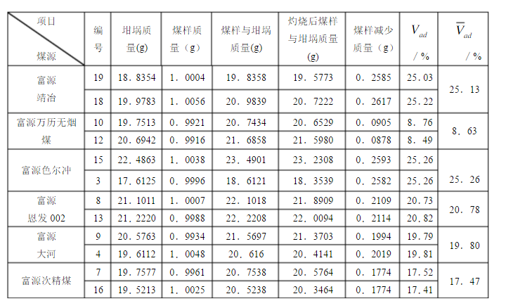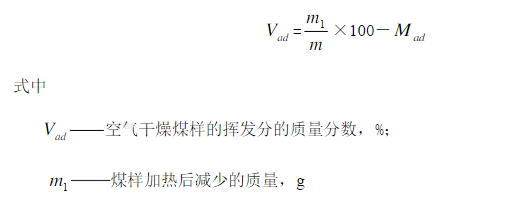 称取一定量的空气干燥煤样放入坩埚中,在900ºC左右下,隔绝空气加热7分钟,以减少的质量占煤样质量的百分数,减去该煤样的水分含量作为煤样的挥发分。