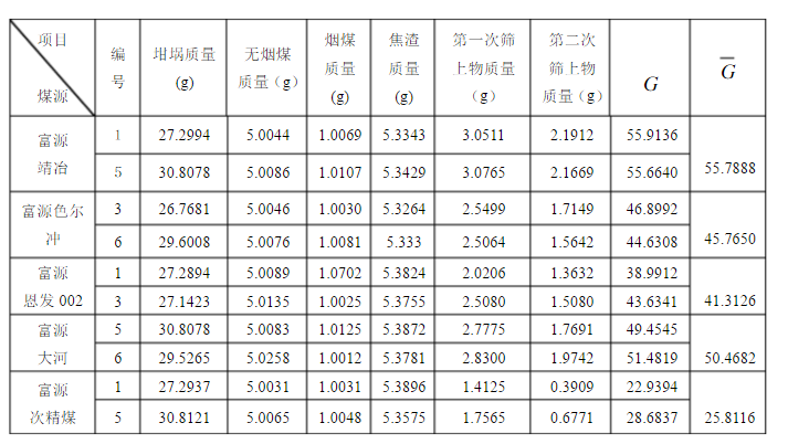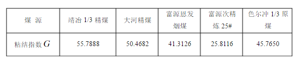 数据显示富源靖台、富源色尔冲、大河精煤的粘结指数在重复性限范围内,富源恩发、富源次精煤不在重复范围内,但误差不是