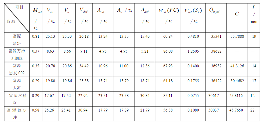 (5)按中国煤炭分类,富源恩发,富源色尔冲属于1/2中黏煤,靖冶精煤、大河精煤属于焦煤,富源次精煤属于弱黏煤。