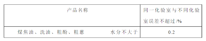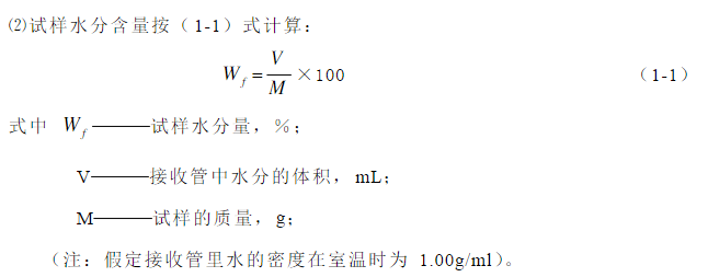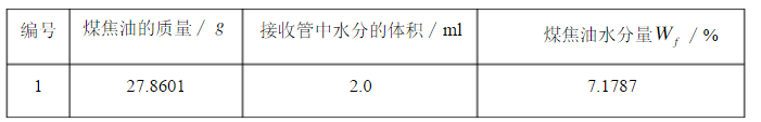 根据煤焦油与水的熔沸点的不同,蒸馏冷凝出水分,水分质量占试样质量的百分数即为水分含量。
